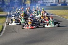 Entsprechend groß war der Teilnehmeransturm. Rund 110 Fahrer begaben sich bei bestem Herbstwetter auf die Jagd nach Pokalen und einem Preisgeldtopf von stolzen 20.000,- Euro. Insgesamt waren fünf Klassen ausgeschrieben. Während die Piloten der Bambini-Waterswift und Gazelle um den Sieg im Memorial kämpften, waren die internationalen Felder der KF3, KF2 und KZ2 für den Bridgestone Cup reserviert. Gut und gerne 2.500 Zuschauer sorgten für vollbesetzte Tribünen und bekamen Kartsport vom Feinsten sowie ein reichhaltiges Showprogramm serviert. Bambini: Ghattas und Hill gewinnen Trips-Memorial Die TR Motorsport-Piloten Doureid Ghattas, Ilya Zamula und Anton Kostioukevitch dominierten das Geschehen im Zeittraining der 20 Waterswift-Piloten, was sich auch in den Vorläufen fortsetzen sollte. Ghattas leistete sich keinen Fehler und verteidigte mit zwei Siegen seine Pole-Position für das Pre-Finale. Neben ihm begnügte sich DMV-Champion Anton Kostioukevitch mit Position zwei. Der Dritte im Bunde, Ilya Zamula, fiel hingegen auf Position fünf zurück und musste Gilian Lipinski (GN Motorsport) und David Brinkmann (KSM Racing Team) die Plätze drei und vier überlassen. Im Pre-Finale legte Doureid Ghattas den besten Start hin. Doch noch in der ersten Kurve fand Lipinski einen Weg am Bonner vorbei. Zusammen setzten sich die beiden Youngster schnell vom Rest des Feldes ab und machten den Sieg unter sich aus. Den packenden Fight entschied Ghattas nach acht Runden knapp für sich. Auch dahinter hielt ein Zweikampf die Zuschauer in Atem. Anton Kostioukevitch und Leon Deselears (KSM Racing Team) waren die Hauptdarsteller des Duells, das am Ende zu Gunsten von Kostioukevitch ausging. Zum Dreikampf wurde das alles entscheidende Finale der Jüngsten. Doureid Ghattas, Anton Kostioukevitch und Gilian Lipinski lieferten sich einen fulminanten Schlagabtausch an der Spitze. Keinen Meter schenkte sich das Trio, das teilweise im Formationsflug nebeneinander um den Kurs pflügte und dabei gefühlte 1.000 Mal die Positionen wechselte. Erst mit dem Fallen der Zielflagge war die Entscheidung gefallen: Ghattas gewann vor Kostioukevitch und Lipinski das Graf Berghe von Trips Memorial 2012. „Die Konkurrenz war wirklich sehr hart, deswegen habe ich mich auch umso mehr über den Sieg gefreut. Ich bin auch meine persönlich schnellste Runde hier auf meiner Heimstrecke gefahren – ein tolles Happy End für mich und mein Team“, strahlte Doureid Ghattas am Abend. In der Wertung der Gazelle-Fahrer setzte Phil Hill das erste Ausrufezeichen, indem er sich die Bestzeit im Zeittraining sichern konnte. Am Mülheimer führte auch in den Vorläufen kein Weg vorbei: Zwei Siege brachten ihm die endgültige Pole-Position ein. Dahinter komplettierten Nico Hantke, Simon Cernoia und Davids Trefilovs (TR Motorsport) die Verfolgerpositionen. Zu den Finalrennen gab es ebenfalls kein Vorbeikommen an Phil Hill. Er fuhr sein Birel-Kart gleich in beiden Läufen zum Sieg und gewann am Ende deutlich vor Nico Hantke und Davids Trefilovs, die als Zweiter und Dritter das Podium der Tagessieger komplettierten. KF3: Beckmann gewinnt mit Doppelsieg Das Feld der 26 Junioren hatte Mick Betsch (KSM Racing Team) im Zeittraining fest im Griff. Der Youngster markierte mit 42.231 Sekunden knapp die Bestzeit vor dem amtierenden DMV-Champion David Beckmann und dem Niederländer Martijn van Leeuwen (beide Keijzer Racing). Toni Wolf (JEDI Racing Team) und Roman Schwedt (RL-Competiton) sicherten sich die viert- und fünftschnellste Runde, bevor es im Anschluss in die Qualifikationsrennen ging. Für den Trainingsschnellsten Betsch wurden die Vorläufe zum Waterloo: Zwei problemreiche Heats warfen ihn auf den 14. Gesamtrang zurück, während sich vorne David Beckmann mit einem Doppelsieg auf die Pole-Position bugsierte. Neben dem Hagener fand sich Toni Wolf auf Rang zwei wieder. Richtig Boden gut machte Sophia Floersch. Erstmals für das KSM Racing Team am Start, verbesserte sie sich vom 18. Platz im Zeittraining auf den dritten Rang in der Heat-Addition und platzierte sich damit noch vor DJKM-Vizemeister Arlind Hoti (KSM Racing Team) und Martijn van Leeuwen. David Beckmann legte im Pre-Finale den besten Start hin und profitierte auch von einer größeren Rangelei hinter sich. Ausgerechnet die schnelle Dame im Feld, Sophia Floersch, verlor dadurch bereits zu Rennbeginn alle Chancen auf ein gutes Ergebnis. Während sich Beckmann in der Folge spielerisch vom Feld lösen konnte und einen sicheren Sieg nach Hause fuhr, sorgten dahinter neue Gesichter für Furuore. Zunächst lag noch Lirim Zendeli (KSM Racing Team) auf dem zweiten Platz. Doch er musste am Ende den nach vorne stürmenden Justin Barth und Julian Müller (RMW Motorsport) die Bahn frei machen, die sich mit sehenswerten Aufholjagden aus dem Mittelfeld nach vorne fahren konnten. War der Pre-Finalsieg für David Beckmann noch ein kleiner "Spaziergang", hatte es der Zanardi-Pilot im Finale deutlich schwerer. Er übernahm am Start zwar erneut die Spitze, hatte aber zu Rennbeginn eine zehnköpfige Verfolgermeute im Nacken. Erst nach einigen Runden löste sich der Hagener zusammen mit Martijn van Leeuwen im Schlepptau vom wilden Getümmel. Bei langen 23 Runden war hier jedoch noch nichts entscheiden. Die beiden Führenden spulten ihr Rennen souverän im Doppelpack ab. Erst auf den letzten Metern wurden die Messer wieder gewetzt. In der Folge fand van Leeuwen sogar kurzzeitig den Weg an Beckmann vorbei, bevor der DMV-Champion erfolgreich kontern konnte und den Sieg im Bridgestone Cup 2012 knapp vor dem Niederländer nach Hause fuhr. Hinter dem Siegerduo komplettierte Toni Wolf als Dritter das Podium nachdem er sich tapfer durch das Verfolgerpulk kämpfen konnte. „Das Zeittraining, die Vorläufe, das Pre-Finale und auch das Finale liefen einfach super für mich. Das letzte Rennen hatte es jedoch in sich und war das härteste Rennen an diesem Wochenende. In den letzten fünf Runden lieferte ich mir immer wie