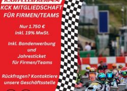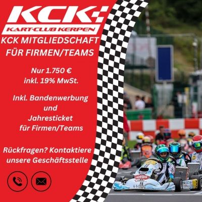 KCK-Firmenticket / KCK-Jahresticket Werde Teil des Kart-Club Kerpen und profitiere von der Mitgliedschaft für Firmen/Teams. Der Erftlandring ist im Aufschwung und zieht zahlreiche Gäste, Besucher und Kartfahren regelmäßig an. Sichere dir mit unserer neuen Firmenmitgliedschaft eine attraktive Werbeplattform für dein Unternehmen. Die Benefits für Unternehmen/Firmen: Der Firmenchef wird ordentliches Mitglied im Kart-Club Kerpen, es kann eine individuelle Bandenwerbung angebracht werden, die Kunden/Fahrer können durch das Firmeneigene Jahresticket den Erftlandring kostenlos nutzen, die Beitragsrechnung kann als Geschäftsausgabe angesetzt werden und beinhaltet zum Teil ausgewiesene Mehrwertsteuer. Du hast keine Firma und möchtest trotzdem ein Jahresticket erwerben, kein Problem. Mit dem KCK-Jahresticket sparst du dir grundsätzlich das ehrenamtlich Engagement für eine aktive Mitgliedschaft und kannst direkt und ohne Umwege mit dem Jahresticket den Erftlandring täglich im Rahmen unserer Test- und Einstellfahrten befahren. Die genauen Details zu der Firmenmitgliedschaft und dem Jahresticket für Privatpersonen können dem Mitgliedsantrag entnommen werden. Für weitere Informationen steht die KCK-Geschäftsstelle jederzeit gerne hilfreich zur Verfügung. |