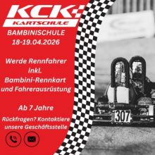 Am 18-19.04.2026 können unsere kleinsten Einsteiger wieder von einem tollen Schulungswochenende profitieren und alles rund um den Einstieg in den Kartsport lernen. Hierbei wird auf den Clubeigenen Bambini-Rennkarts der KCK-Kartschule zwei Tage auf unserem KCK-Rookietrack ausgiebig trainiert und geschult, die Rennfahrerausrüstung steht ebenfalls leihweise zur Verfügung. Der Lehrgang besteht aus zwei Tagen, einer Theorie- und einer Praxis-Schulung und wird von unseren Club-Instruktoren begleitet (Guido Krauthausen / Dorothee Krauthausen). Ab sofort könnt ihr euch für die KCK-Kartschule anmelden und bitte daran denken, dass die Plätze begrenzt sind. Wir freuen uns wieder einigen Kindern unseren Kartsport näher bringen zu dürfen und wer weiß, vielleicht ist ja ein zukünftiger Rennfahrer unter den Teilnehmern. Detaillierte Informationen zur KCK-Kartschule, den Ablaufplan und das Anmeldeformular sind auf unserer Homepage veröffentlicht. Hier findet ihr auch ein informatives Video von unserer KCK Kartschule (hier klicken). Für Rückfragen zum Lehrgang steht euch die KCK Geschäftsstelle jederzeit gerne zur Verfügung. |